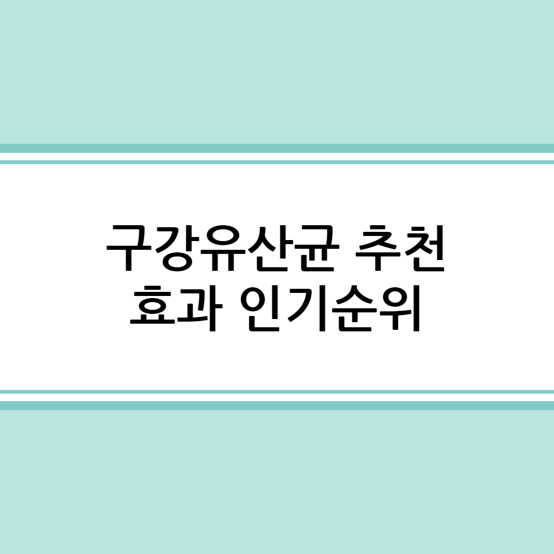 구강 유산균은 최근 건강 관리에 있어 많은 관심을 받고 있는 제품입니다. 특히 구강 건강을 유지하는 데 도움을 줄 수 있는 유산균으로, 많은 사람이 이를 통해 구강 내 환경을 개선하고자 합니다. 이번 포스팅에서는 구강 유산균의 효과와 인기 제품 순위에 대해 자세히 알아보겠습니다.